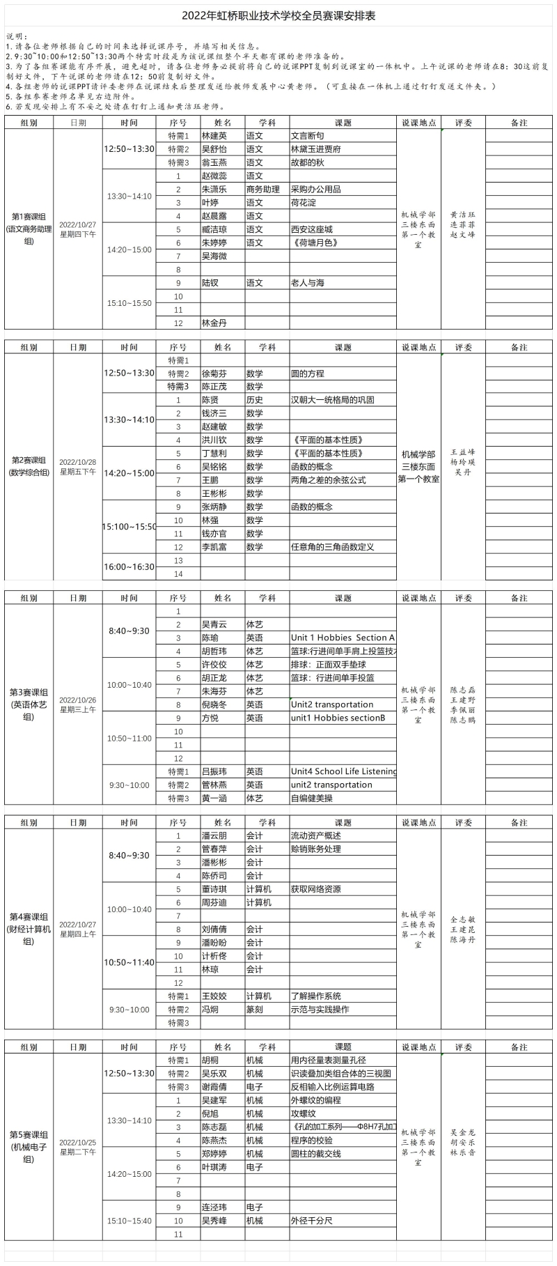 2022年虹桥职业技术学校全员赛课安排