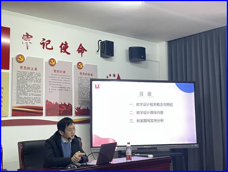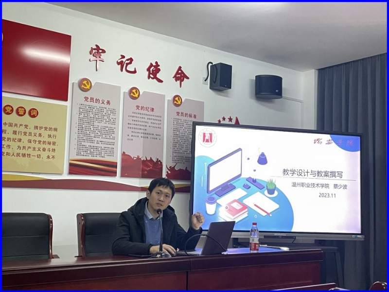 为提高学校新教师队伍教学质量和课堂教学水平,解决新教师在教学设计与教案撰写中存在的问题。2023年11月25日,我校特邀请温州职业技术学院蔡少波老师到校为近三年新入职教师开展《教学设计与教案撰写》专题讲座。